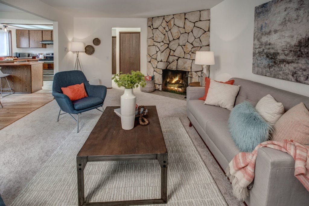 Built at a time when the home was for entertaining, this palatial first-floor condo in Pinehurst is ready for your next social gathering. The 1970s were not only known for entertainment they were also known for design centered around maximizing space as well as incorporating nature and the outdoors indoors. In this home, you will find design elements such as the rock wall fireplace playing off of the rock wall outside of the living room. Dark wood trim is balanced with light tone floors and walls. Each room has large windows that let in a ton of natural light but still give a sense of privacy and solitude shielding you from the city at your back.