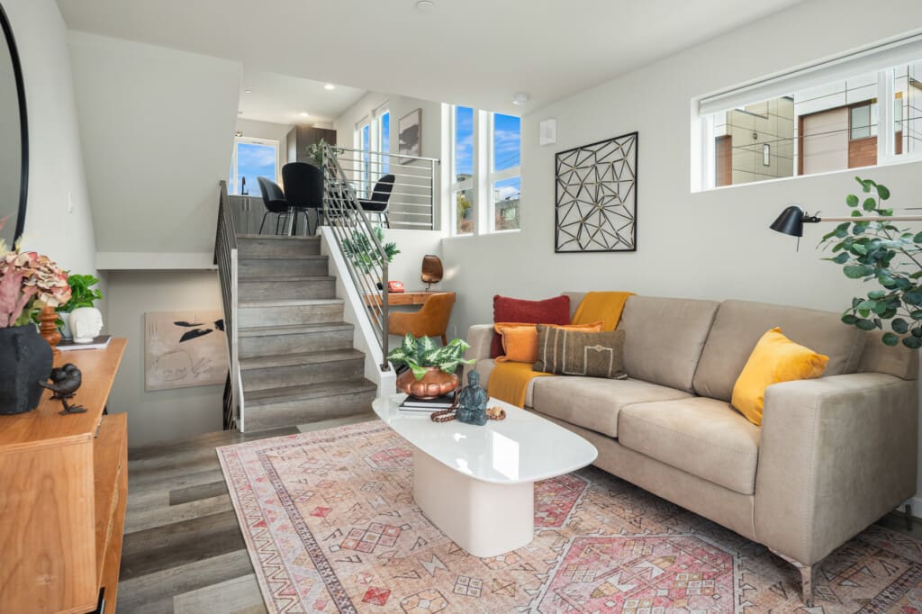 Want to live in Ballard but don’t have a $1 million to spend? You can snag this adorable townhome for under $700K! With three bedrooms, 2 baths, and a roof deck, this home offers diverse spaces for fun and functionality. The vaulted ceilings and west-facing window in the spacious top-floor bedroom keep this space bright and cheery even on dreary Seattle days. The 2nd bedroom makes a great office or media room, and the lower-level bedroom with direct access to the 2nd bath is perfect for guests or roommates. Having an open two-level living area means you can be creating fabulous meals in the kitchen while still staying deeply engaged in the Heated Rivalry conversation happening in the living room. On beautiful days you can mix a refreshing cocktail and head up to the roof deck to lounge with your peeps or dine al fresco. Not into cooking? No problem. Just a couple of blocks away on 65th you will find cool places to eat and drink, such as Mainstay Provisions, The Blue Glass, and The Dray. If you crave more variety, it’s just a short hop over to Market St and Ballard Ave, where you can find tons of amazing places to dine, drink, shop, or just get an awesome cup of coffee. And yes, you do have one covered parking spot, but you also have easy access to transit. Hop on the D Line and get downtown in a breeze for a game, a show, or a fancy dinner. Living here you can have it all—your own home in a great community without breaking the bank!