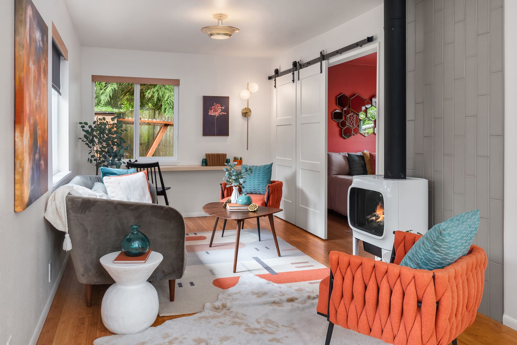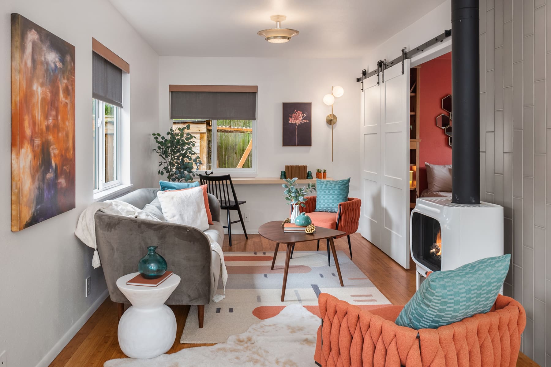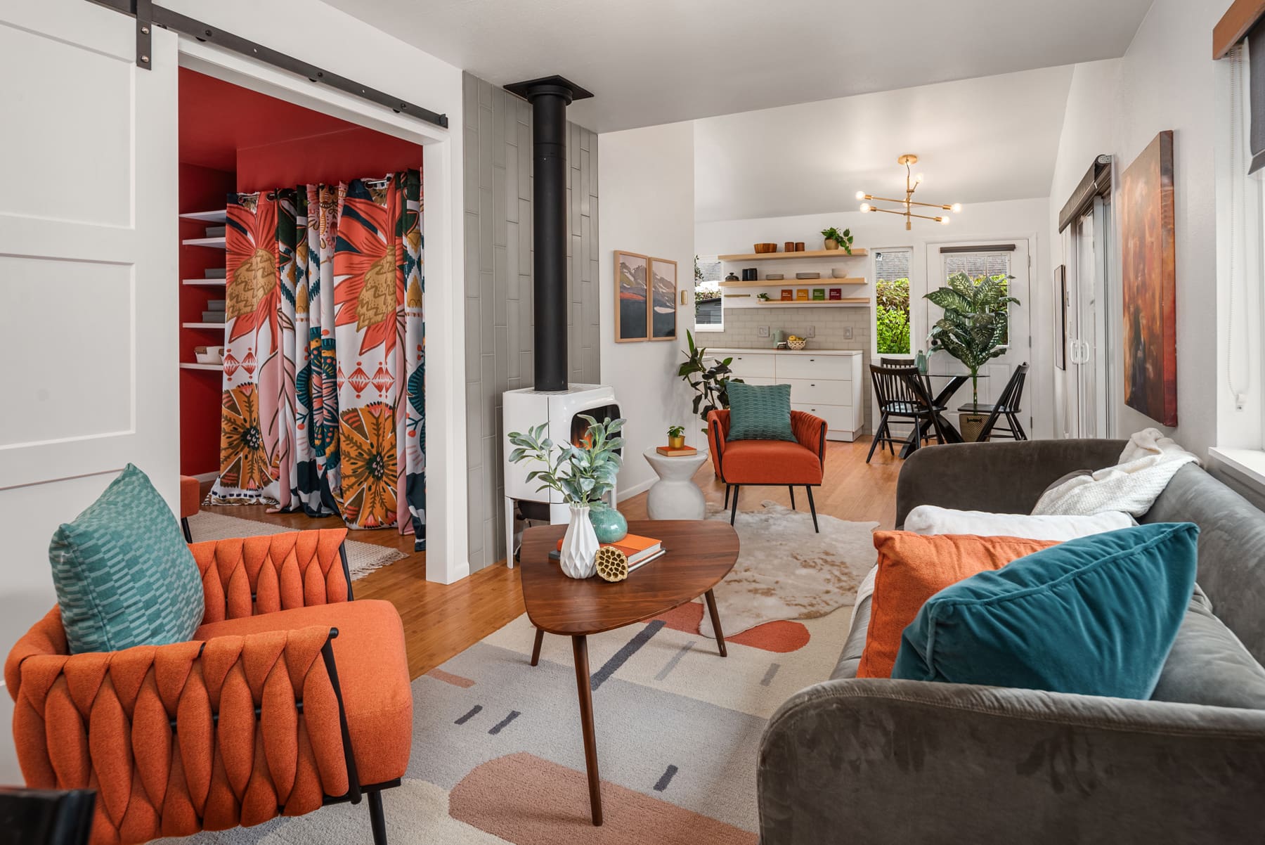 The thoughtful layout makes great use of every space and even allows for hosting up to eight people for dinner!