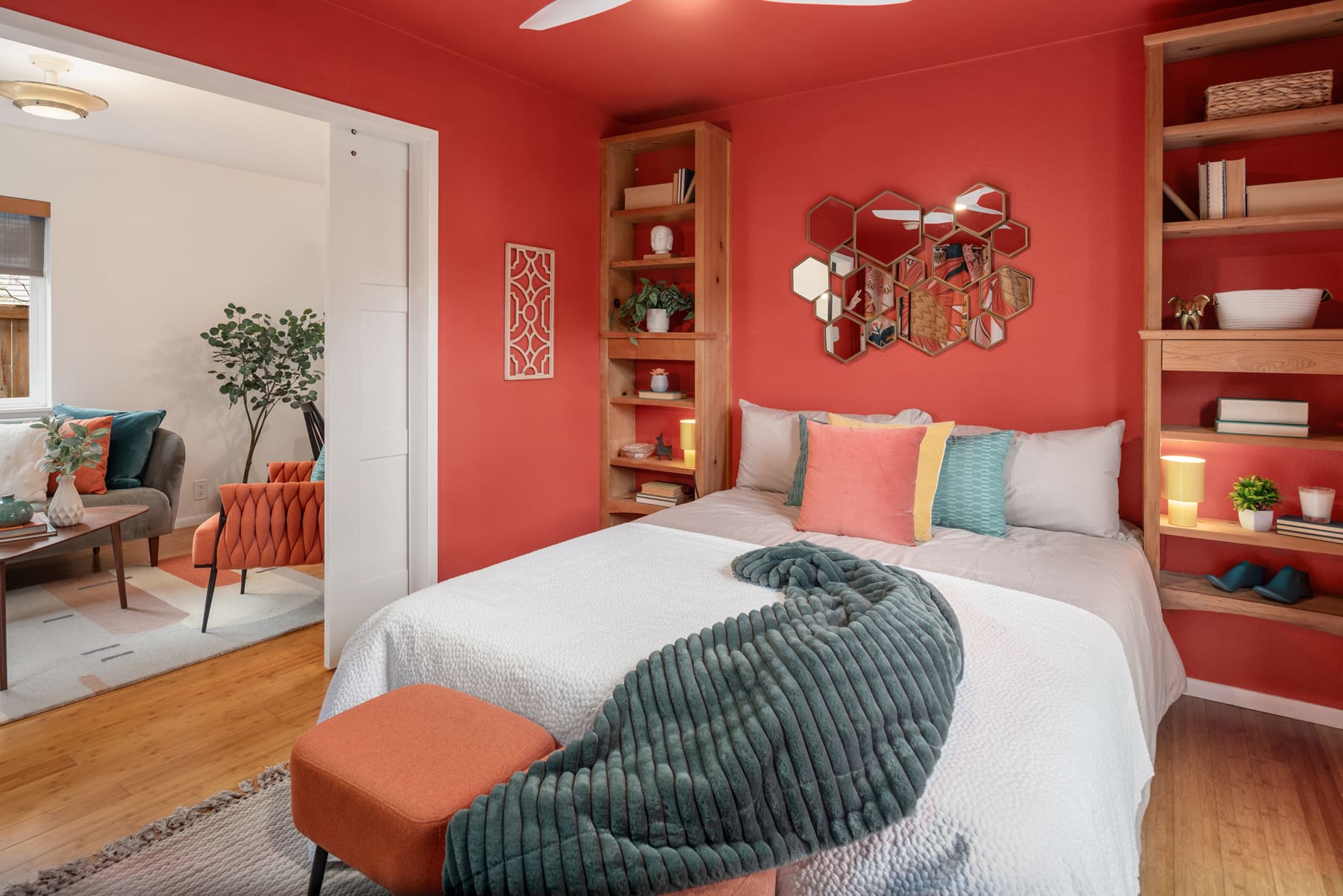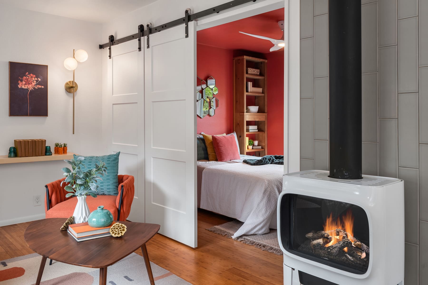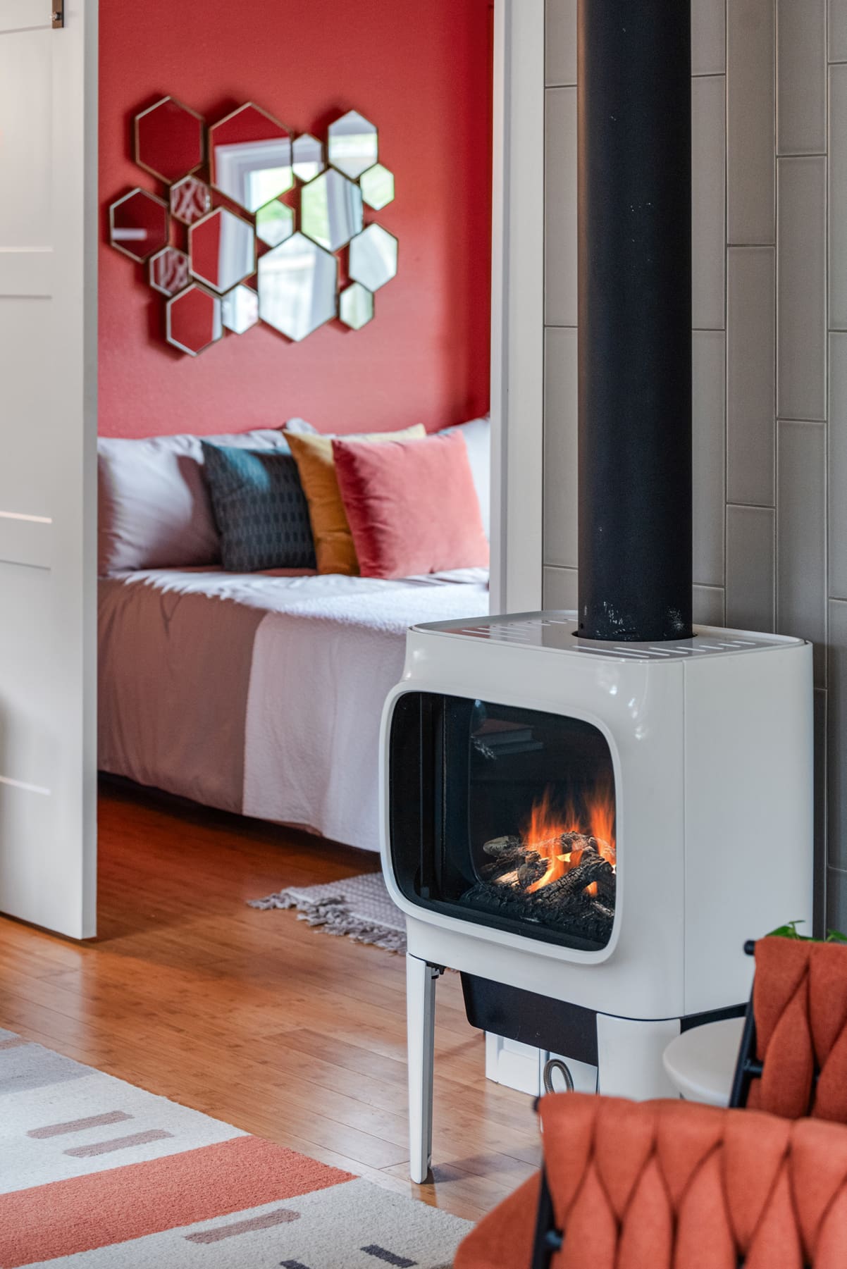 The thoughtful layout makes great use of every space and even allows for hosting up to eight people for dinner!