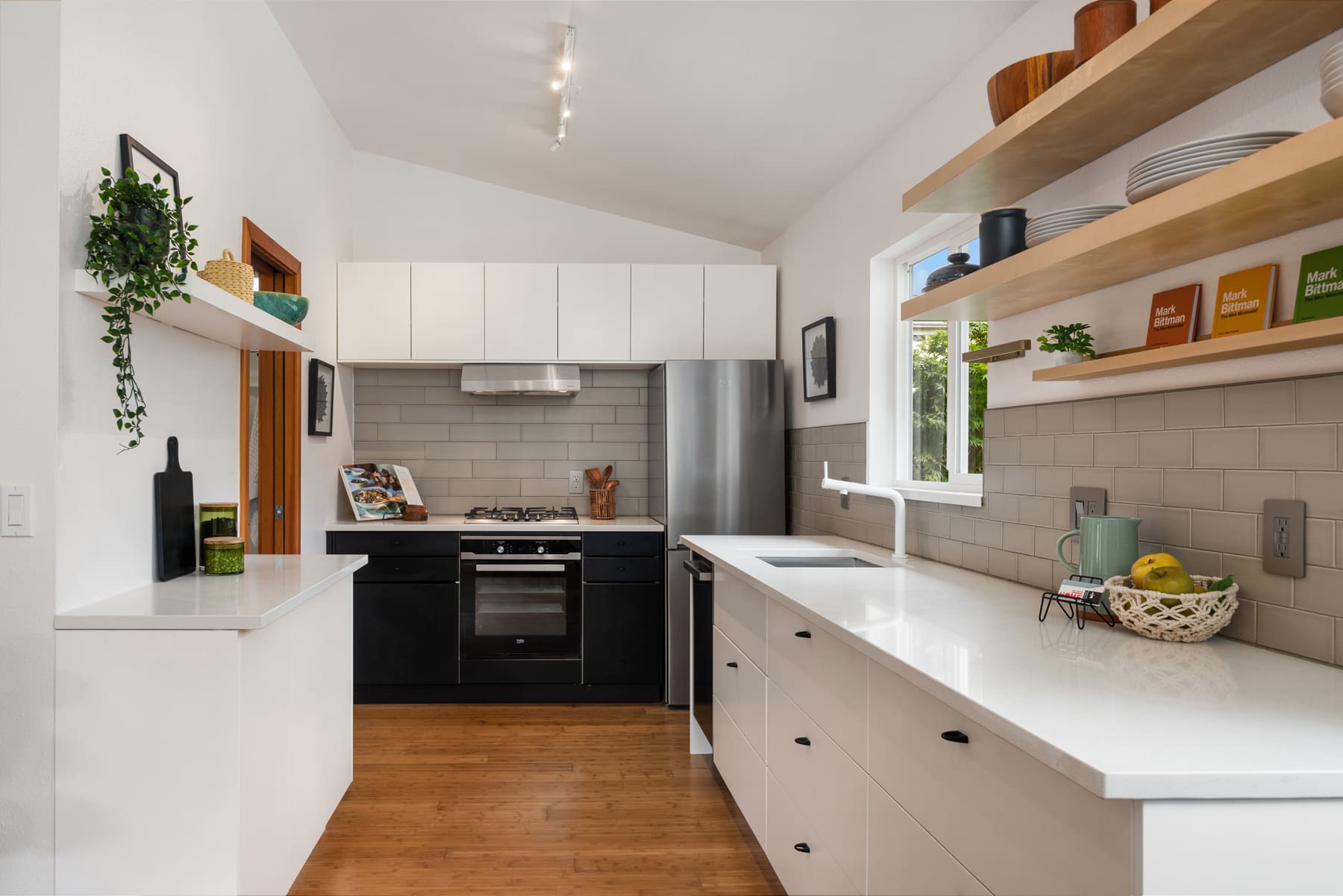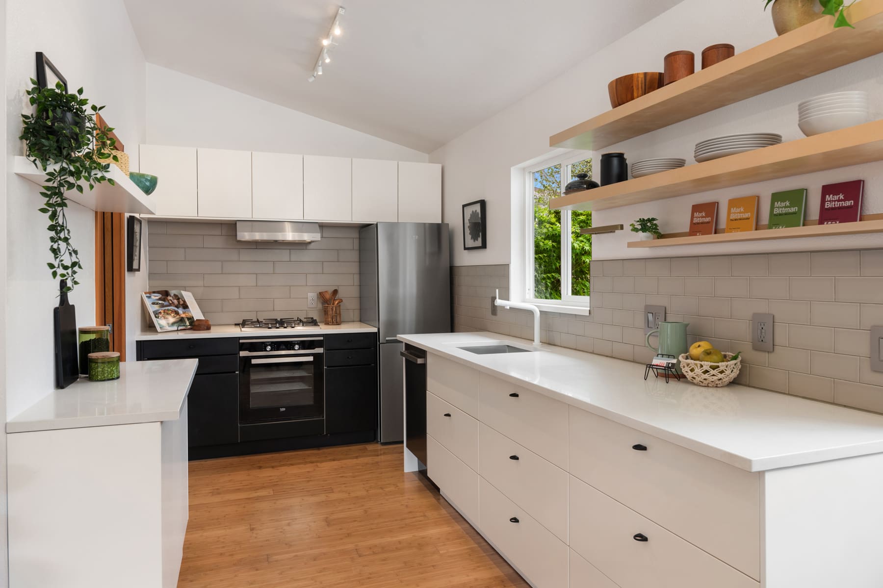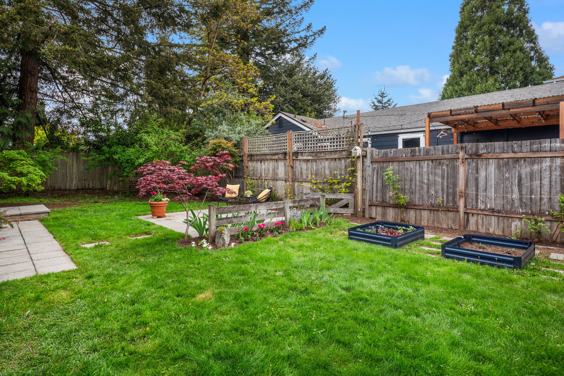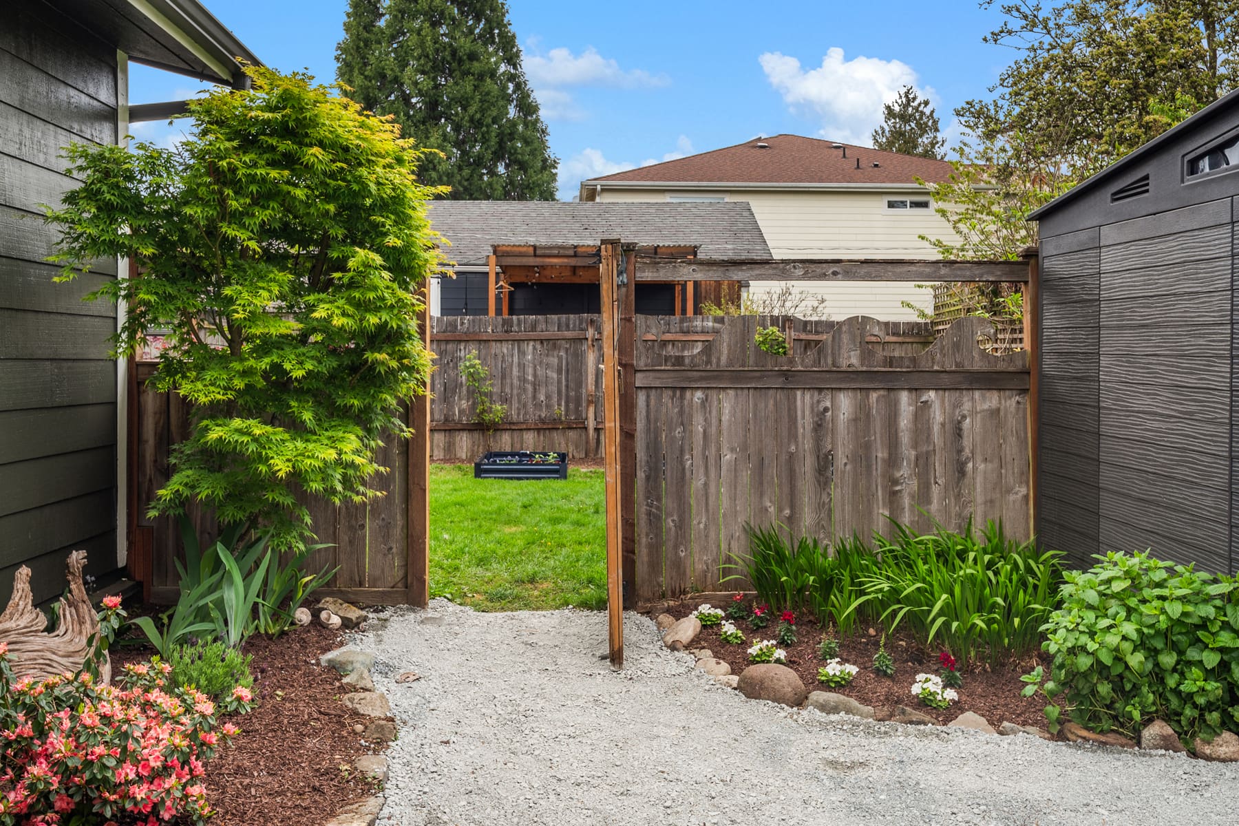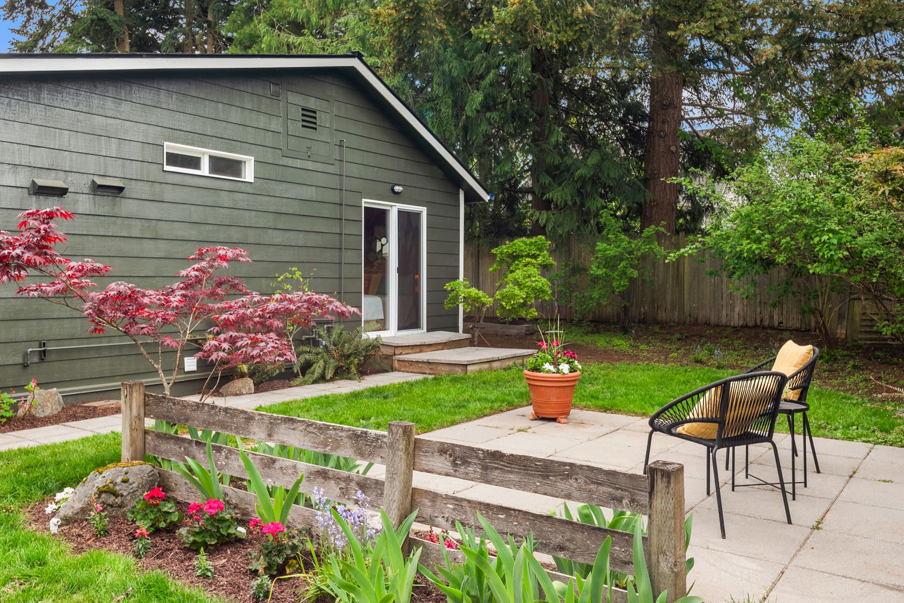 Tiny house alert! Welcome to this Tiny house with a BIG personality in north Ballard. This home has been perfectly updated by a creative seller who maximized the space for modern living in a small footprint. The thoughtful storage, custom built-ins, an intentional kitchen space, and a spectacular yard make this home one of the most unique homes in the neighborhood. This tiny house has also been built to maximize energy efficiency which in this day is everything! Check out the kitchen which is perfectly situated for those who love to cook and entertain. The living room is ready for your cozy Sundays or chill evenings with you honey. The bedroom has custom built in natural wood shelving and a huge closet, plus a slider that leads to your adorable private yard. This outdoor area is fully fenced and has a sizable entertaining patio. You will be amazed by its spaciousness and it is perfect for those who love to grow their own veggies and bask in the PNW’s summer. Imagine hosting summer gatherings or spending time sunbathing with your pals in this great yard. Every part of this home and yard is custom and intentional, which is super rare in todays market. And there is even one off street parking space. Bonus: The location is incredible. Not only do you have all of your fav going out spots close by but you are also super close to the D-line and other transit.