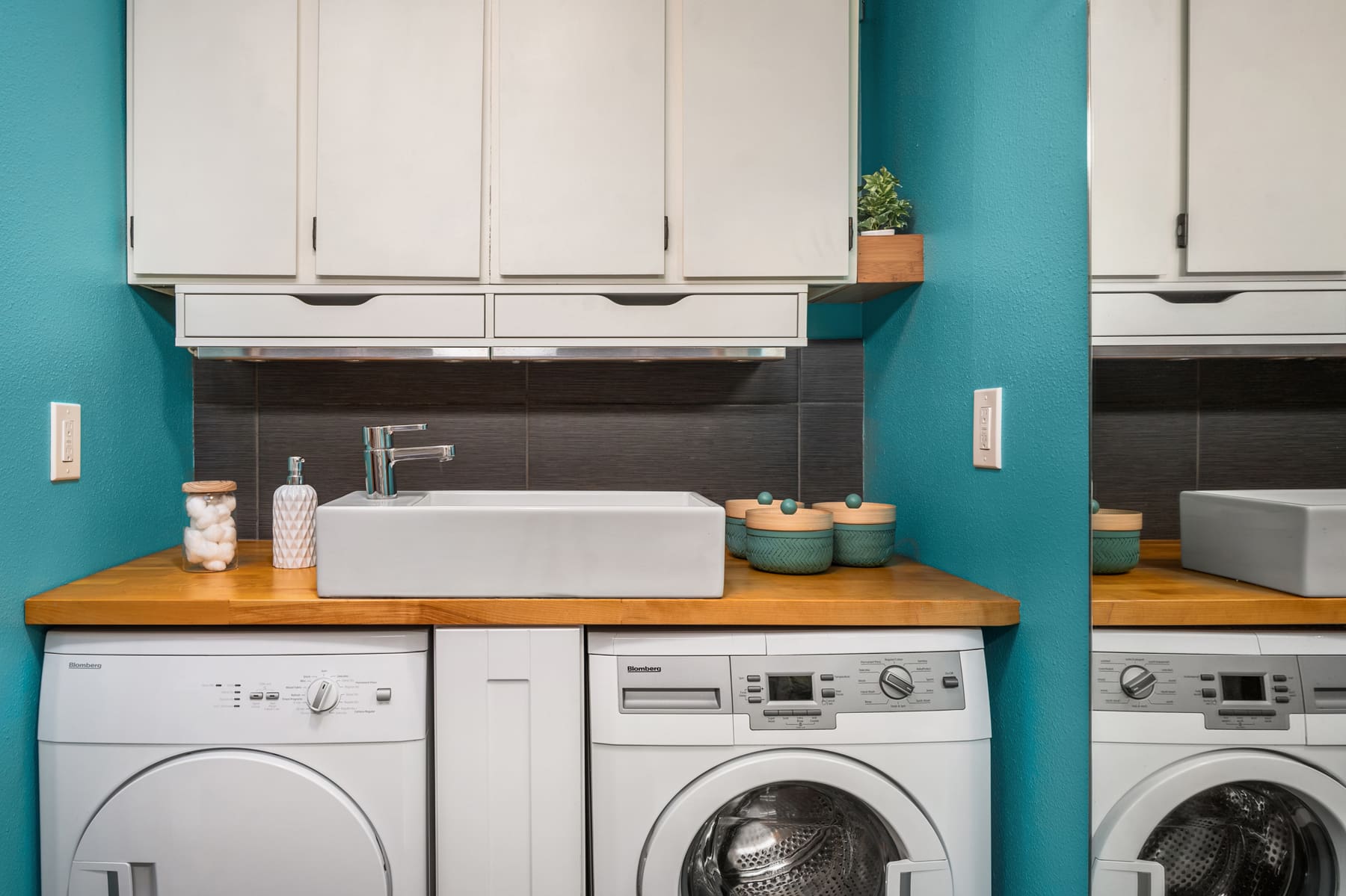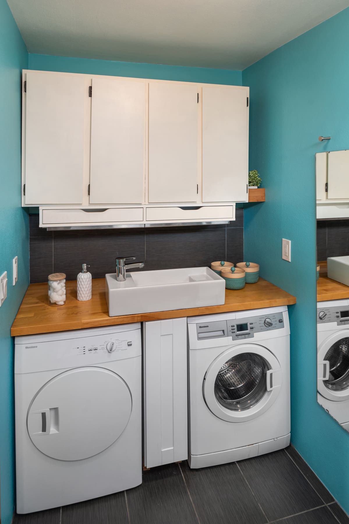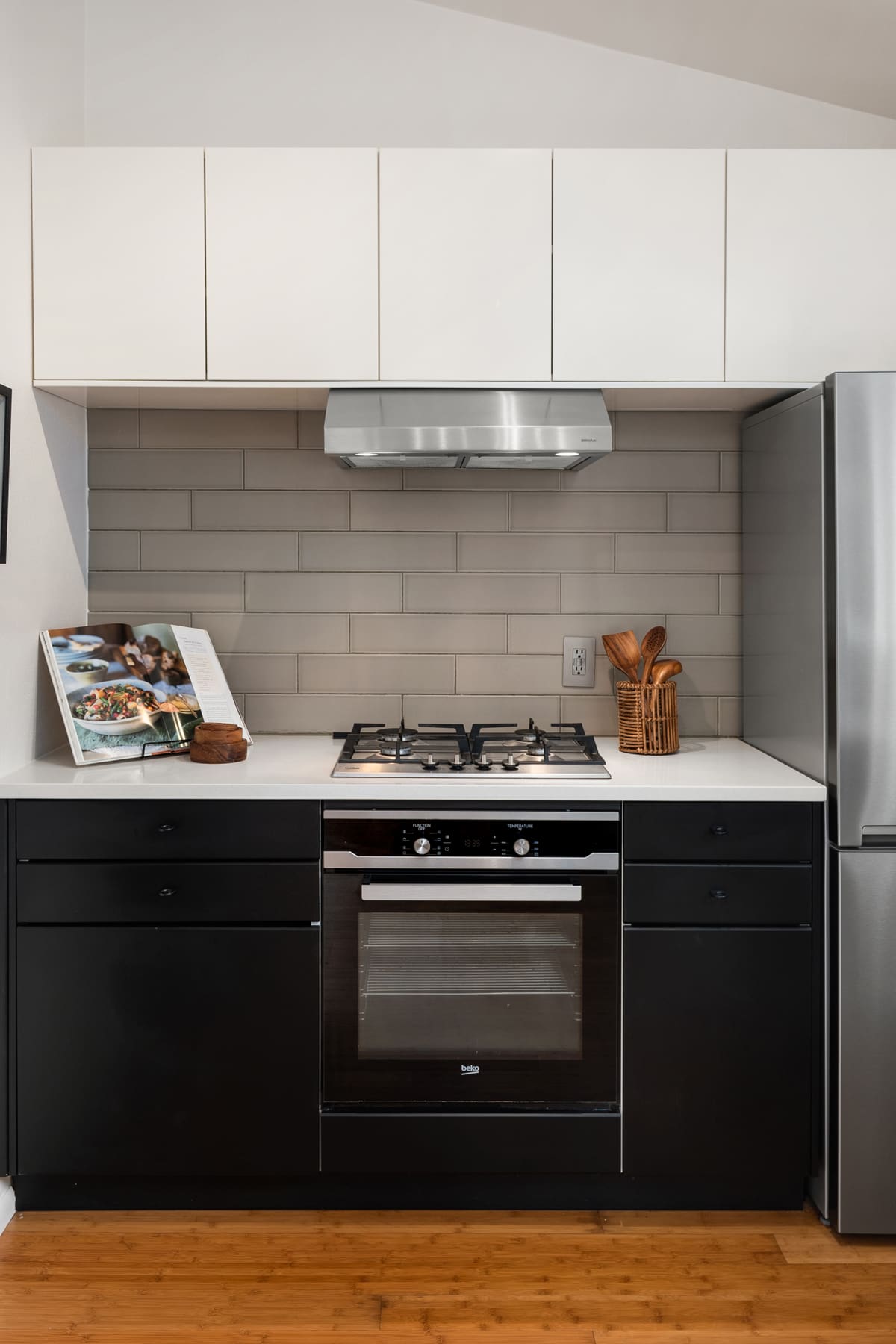 Small but incredibly swanky kitchen. There is actually a great amount of counter space for baking and creating and all European appliances made for efficiency.